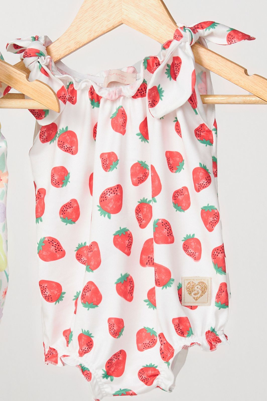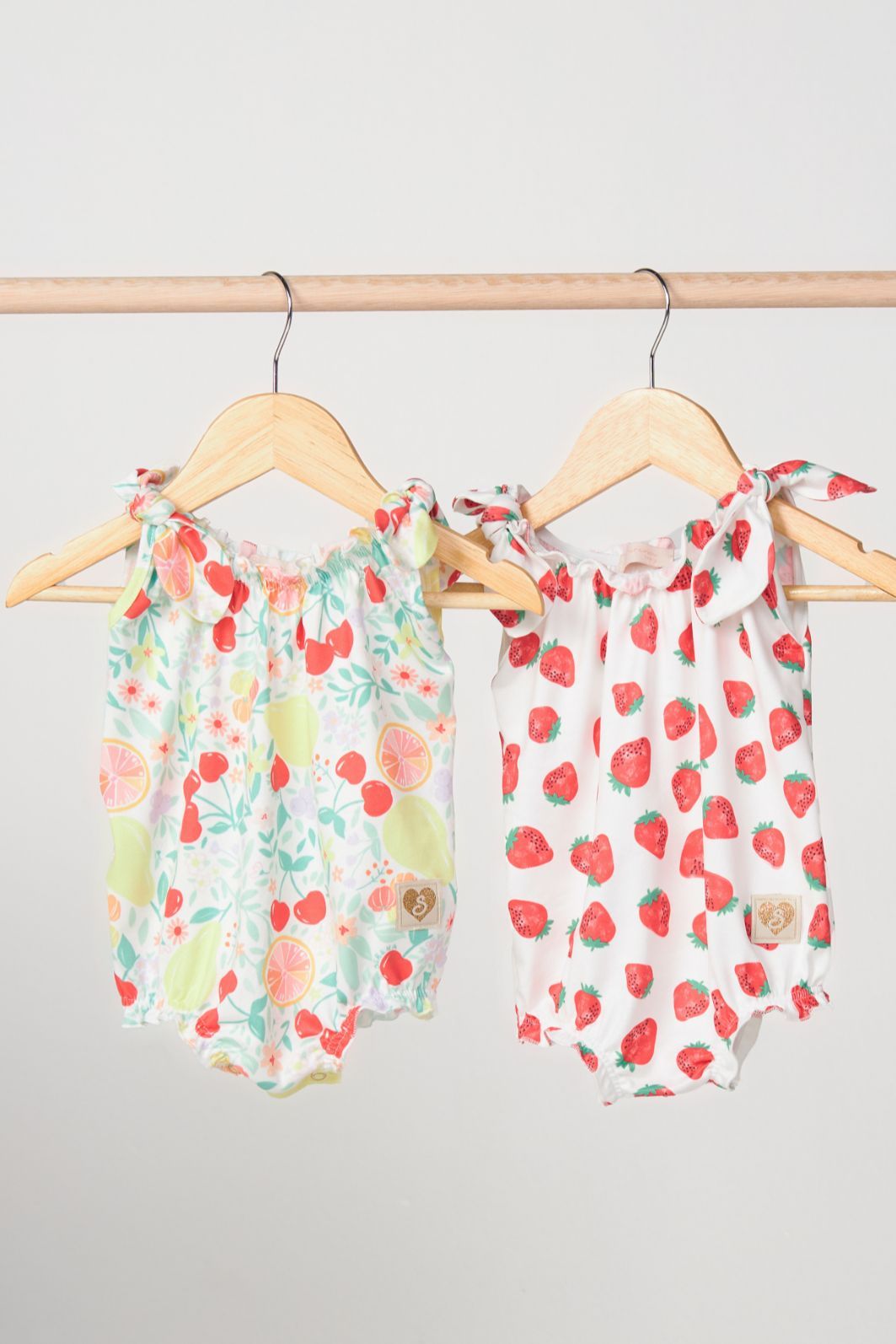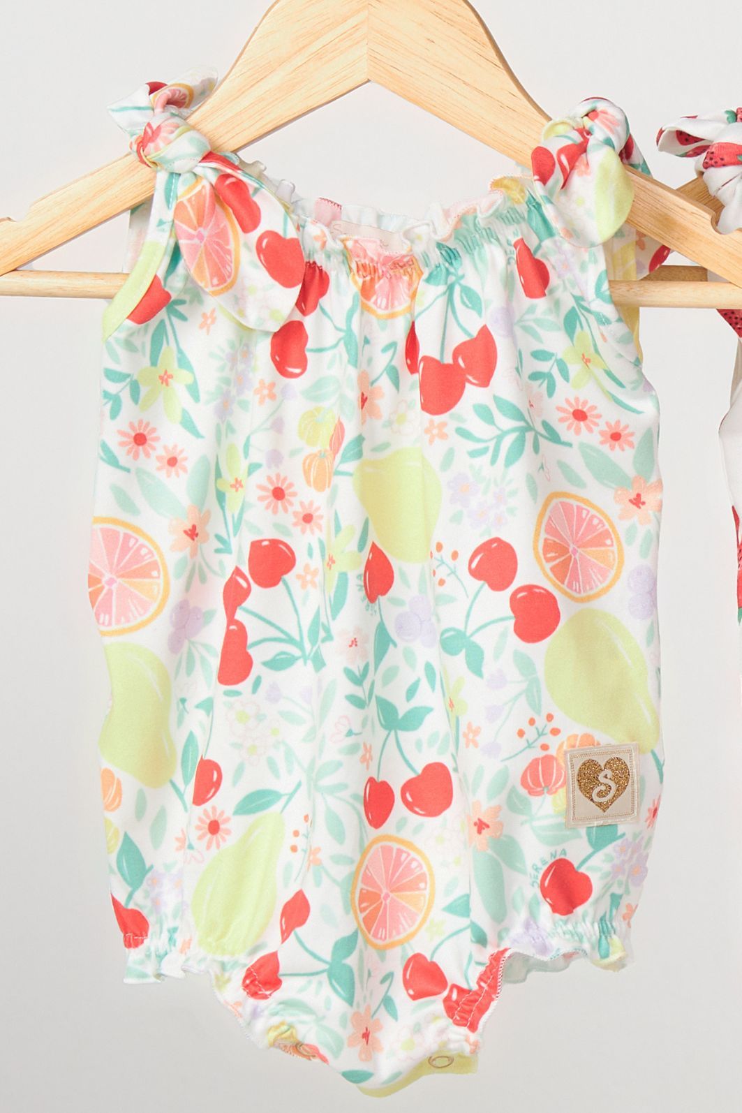 Descrição | bodys infantis femininos, confeccionados em tecido leve e macio com excelente conforto para o verão. Um modelo possui estampa de frutas tropicais como cereja, limão e laranja, enquanto o outro traz uma estampa fofa de morangos. Ambos contam com alcinhas ajustáveis com laço nos ombros e acabamento com elástico nas pernas, proporcionando liberdade de movimento e ótimo caimento. Ideais para uso diário, passeios e dias quentes. Fácil de vestir e lavar, com secagem rápida. |