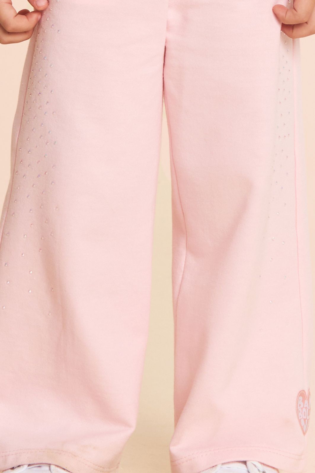 | Descrição | Calça infantil feminina em moletom de algodão, modelagem wide leg com caimento solto e confortável. Possui cós elástico embutido, acabamento macio, detalhe discreto na barra e strass nas laterais. Ideal para compor looks casuais e confortáveis. |