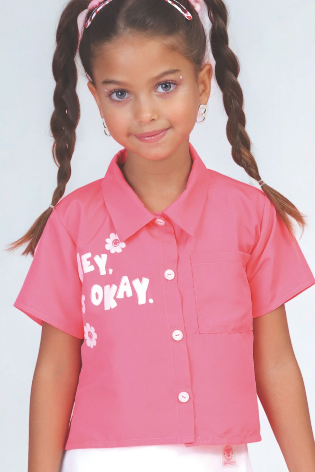 | Descrição | Camisa cropped de manga curta estampada. Possui gola aplicada ao decote, mangas curtas e estampa em silk em um lado, na parte superior frontal. Conta com bolso no outro lado da parte superior, com vista e fechamento por caseado e botão. |