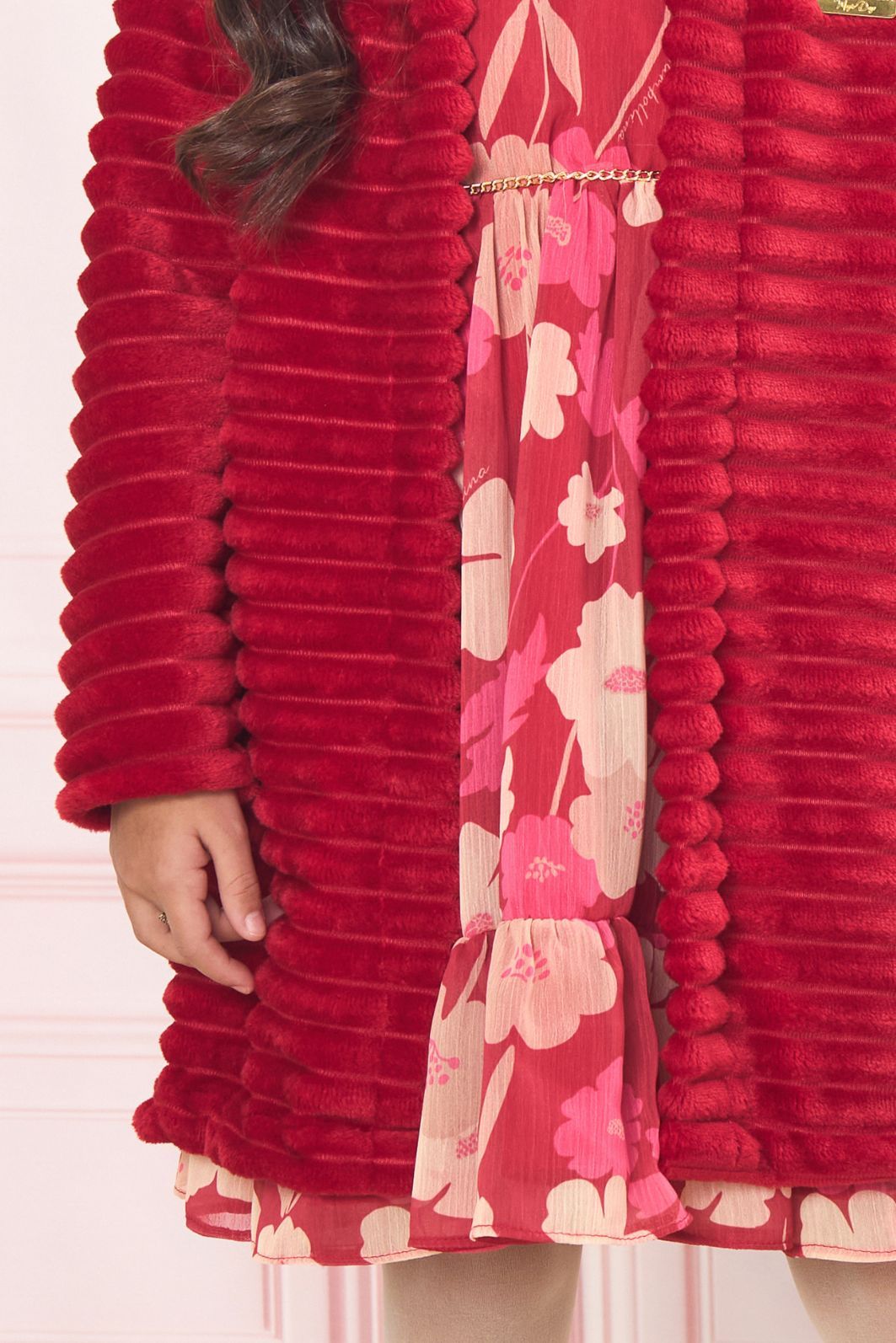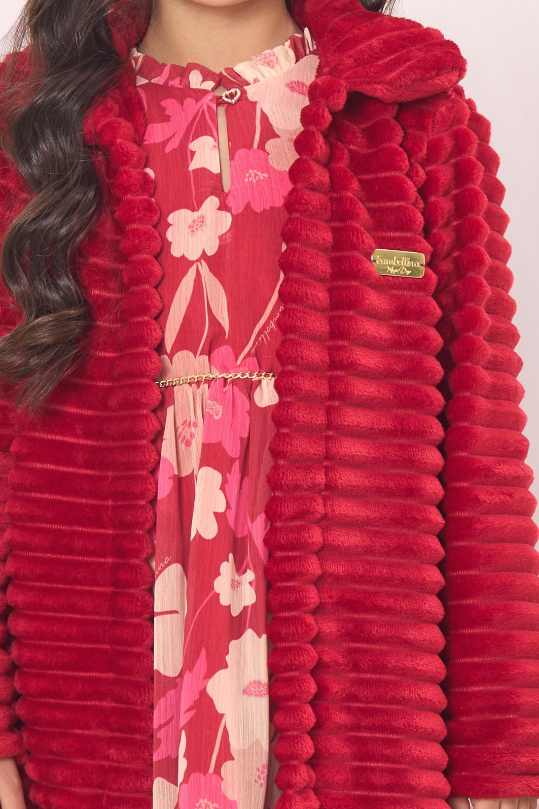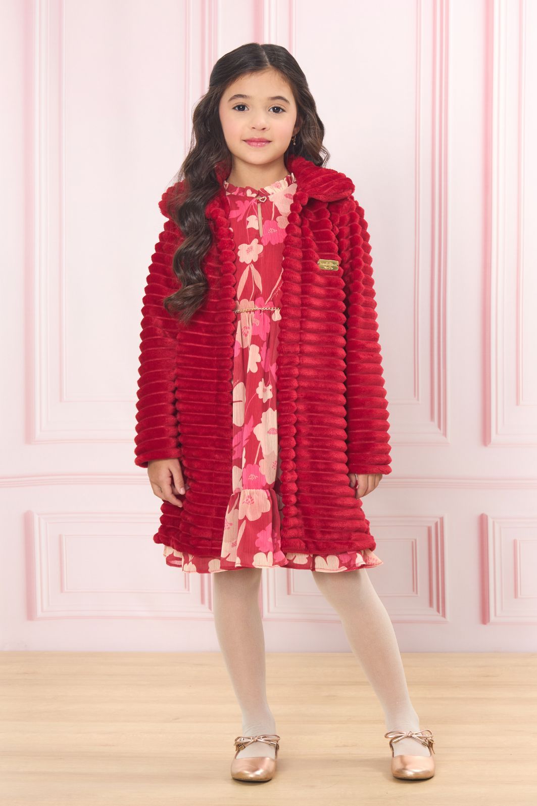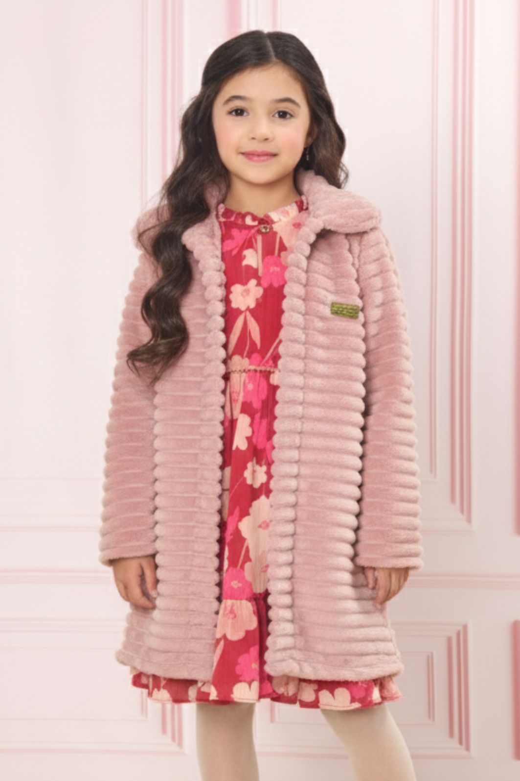 | Descrição | Casaco infantil em pelúcia canelada, com toque macio e visual volumoso. Modelagem reta, comprimento médio e fechamento frontal oculto. Disponível nas cores vermelho e rose. |