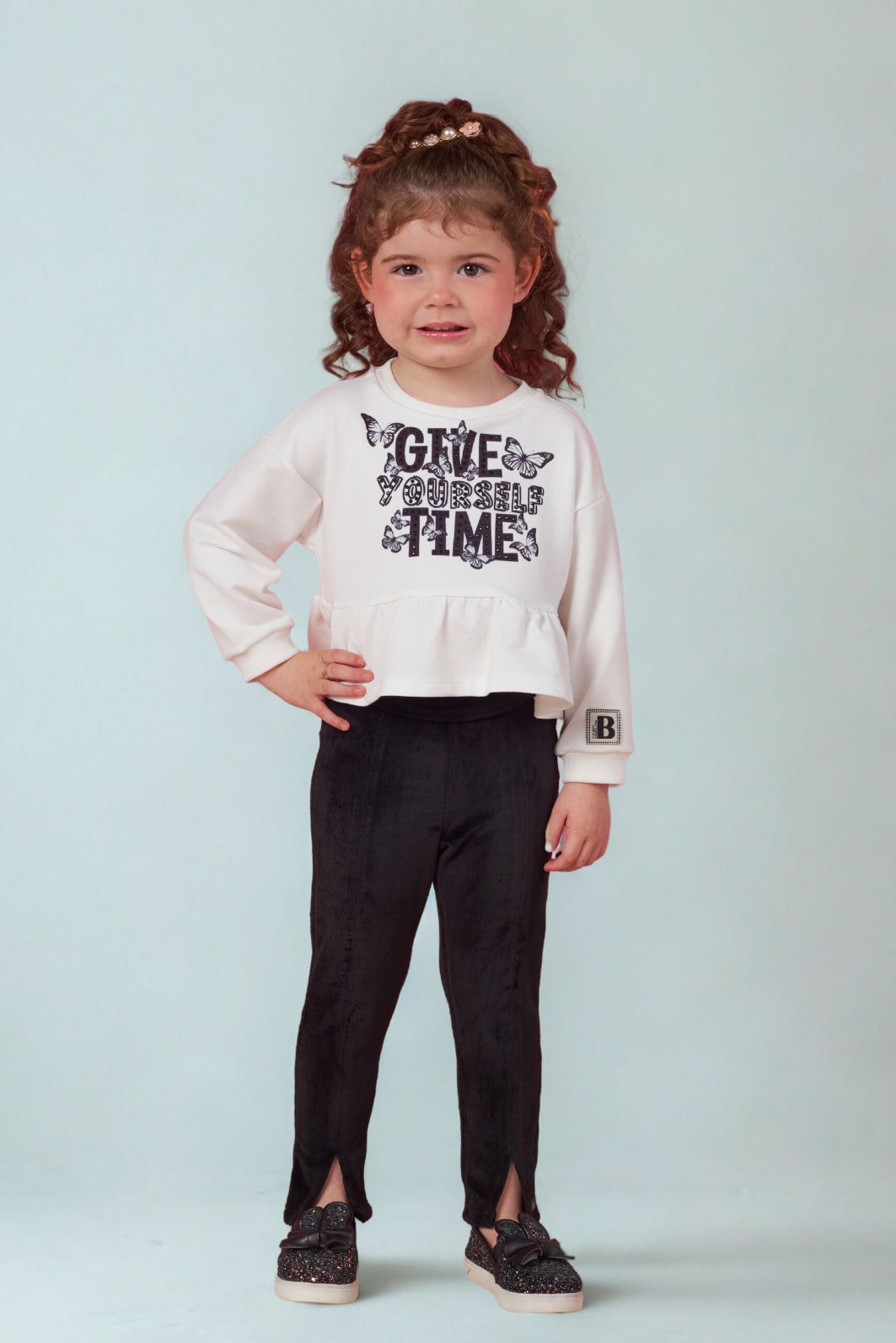 | Descrição | Conjunto infantil feminino composto por blusa de moletinho com estampa frontal e detalhe de babado na barra, punhos ajustados e etiqueta decorativa na manga. Acompanha calça de plush com toque macio, modelagem justa e fenda frontal na barra, proporcionando conforto e estilo ao look. |