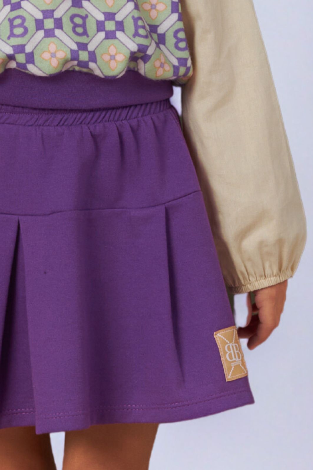 AdicionarDescrição | Este moderno Conjunto Infantil de Estilo Colegial é perfeito para o Outono/Inverno, unindo conforto e alta moda. A peça principal é uma camisa de manga longa bege que já vem com o colete de soft estampado integrado, com um padrão geométrico vibrante em roxo. O colete, feito em tecido soft, proporciona um toque aveludado e quentinho. A saia roxa é confeccionada em moletinho com pregas. É o look ideal de Mini Blogueirinha, garantindo sofisticação e máximo conforto para os dias mais frescos. |