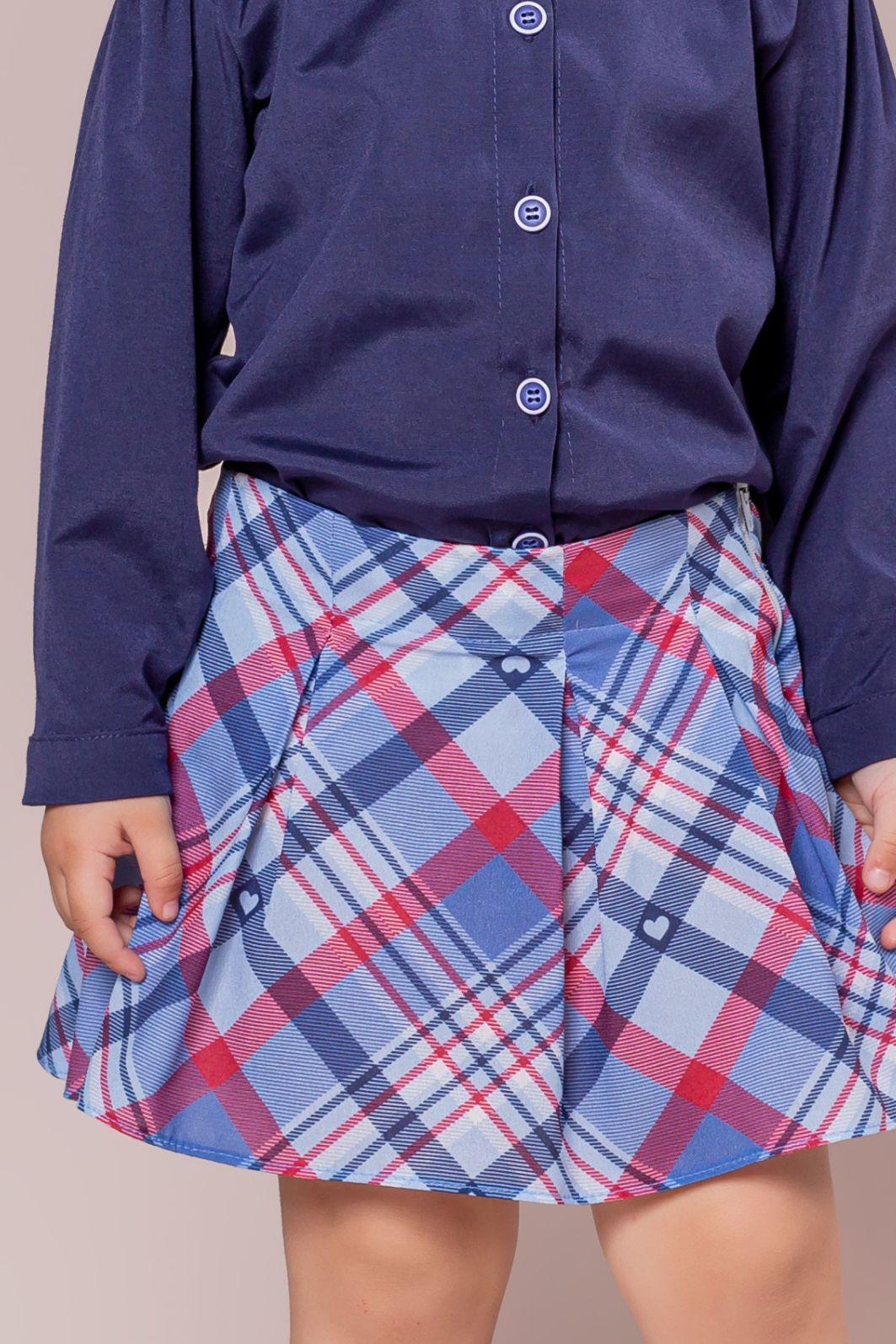 | Descrição | Conjunto infantil composto por camisa e saia. A camisa é de manga longa, cor azul marinho, em tecido tricoline. Possui gola estilo Peter Pan, detalhada com um babado franzido. O fechamento é frontal centralizado, por botões redondos na mesma cor da camisa. A saia é de modelo curto, com pregas largas e confeccionada em tecido de estampa xadrez nas cores azul, vermelho, e branco. |