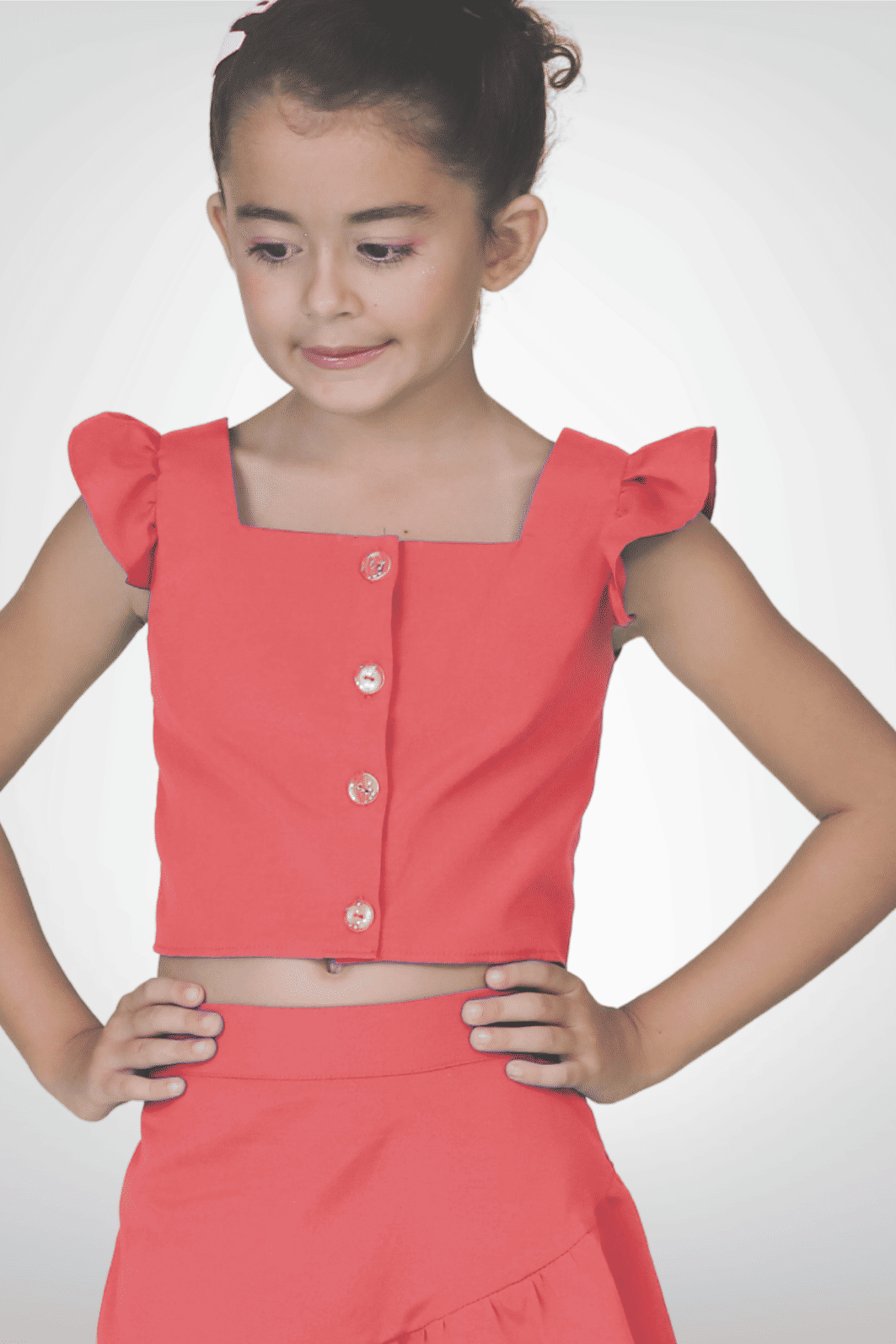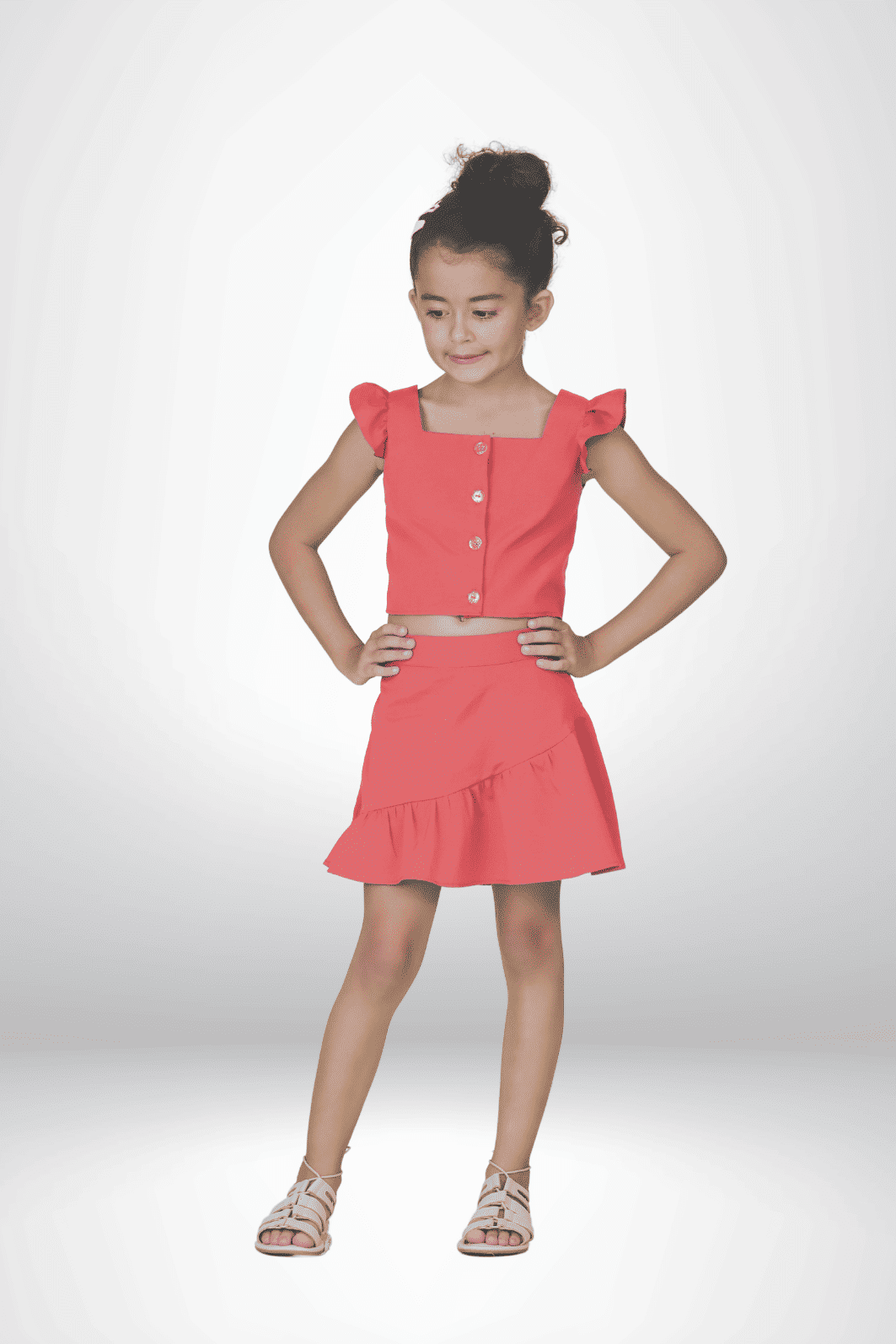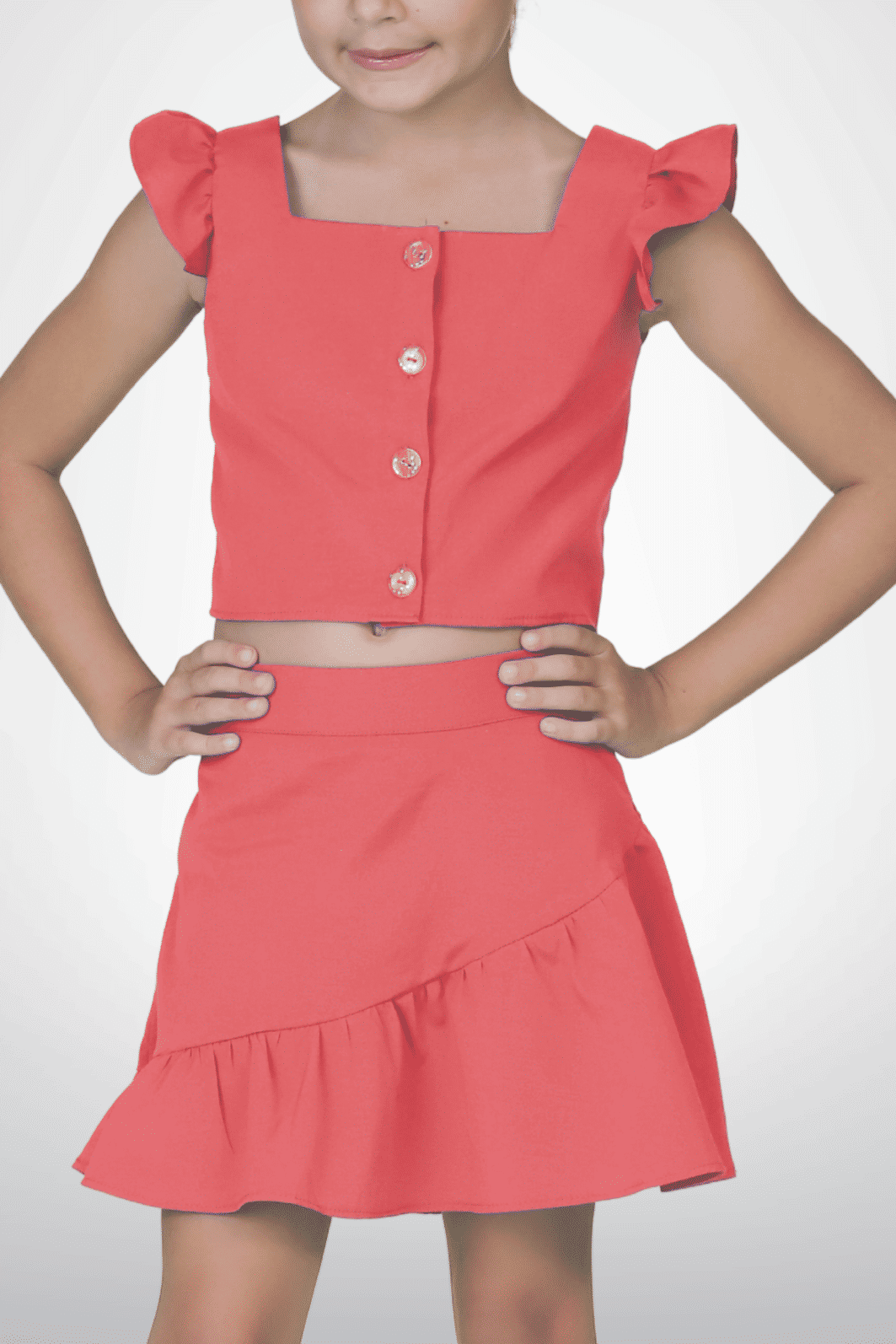 | Descrição | Conjunto cropped e saia de tricoline. Composto por cropped com decote quadrado, babados aplicados franzidos nas alças e vista com caseado e botão. A saia possui elástico e botão regulador na parte interna do cós, com placa personalizada da marca aplicada no mesmo. Também conta com recorte aplicado e franzido, short forro e fechamento por zíper, garantindo praticidade ao vestir. |