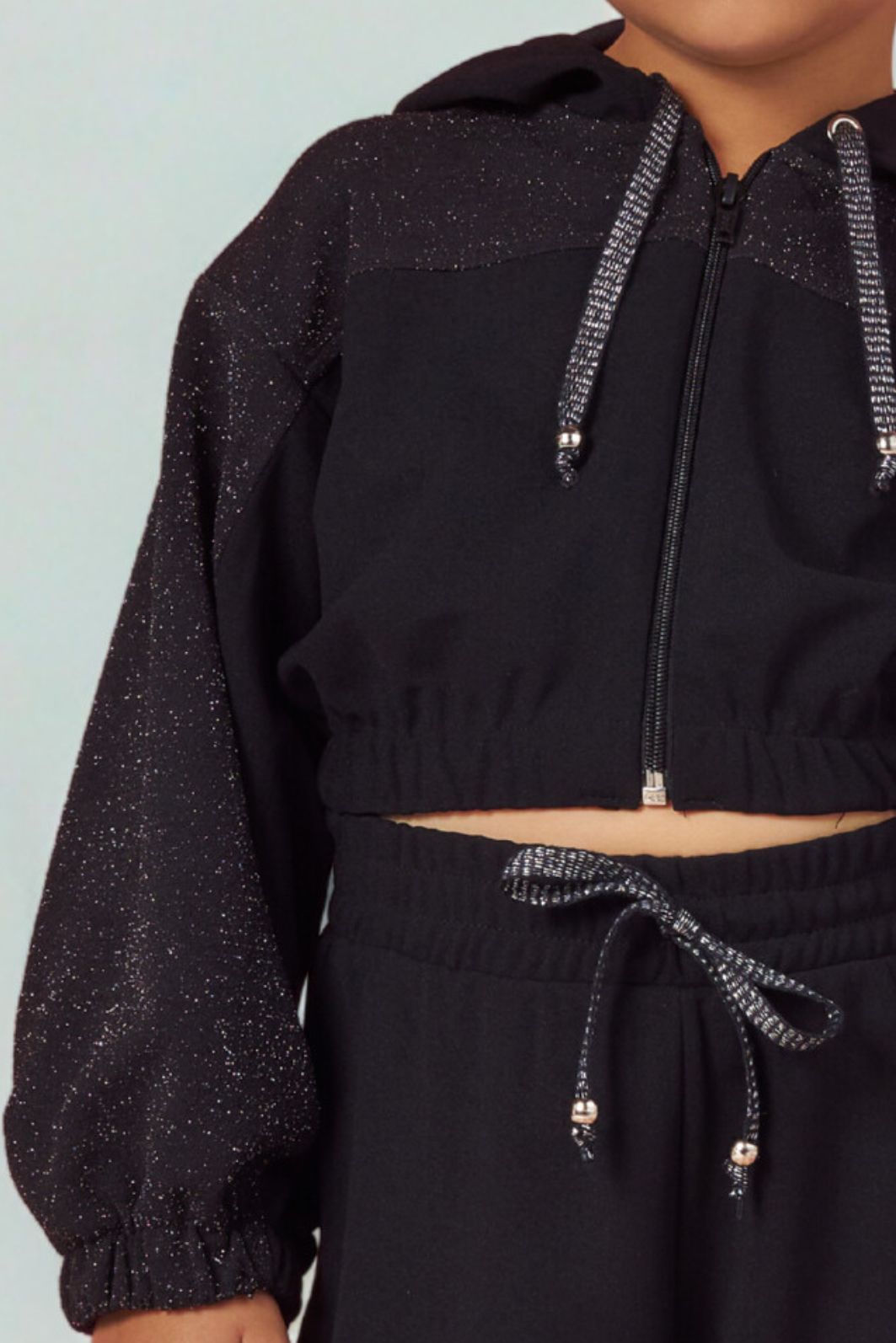 | Descrição | Jaqueta infantil feminina modelo cropped em tecido leve, com capuz e fechamento frontal por zíper. Possui mangas bufantes com detalhe de brilho, punhos e barra com elástico para melhor ajuste. Peça confortável e moderna, ideal para compor looks casuais. |