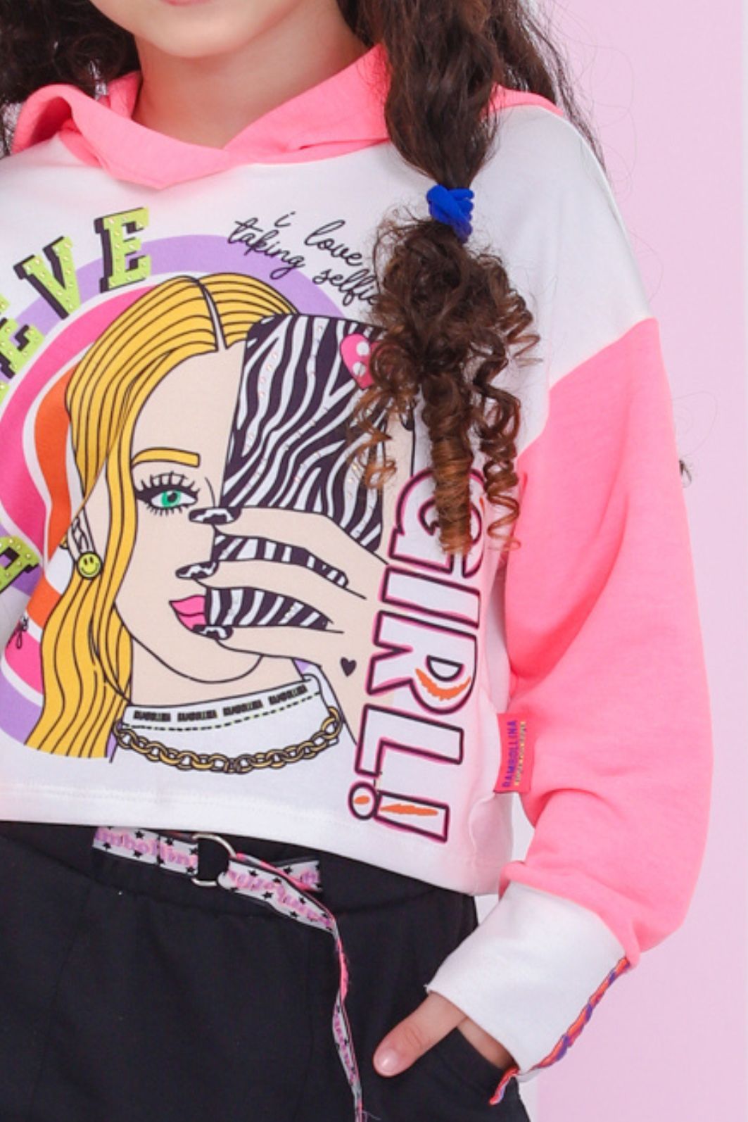 | Descrição | Moletom infantil com capuz, nas cores rosa e branco, com estampa gráfica de desenho e a frase "Believe in yourself". Confeccionado em material confortável, possui mangas longas e acabamento moderno, ideal para looks casuais e descolados. Perfeito para combinar com peças do dia a dia. |