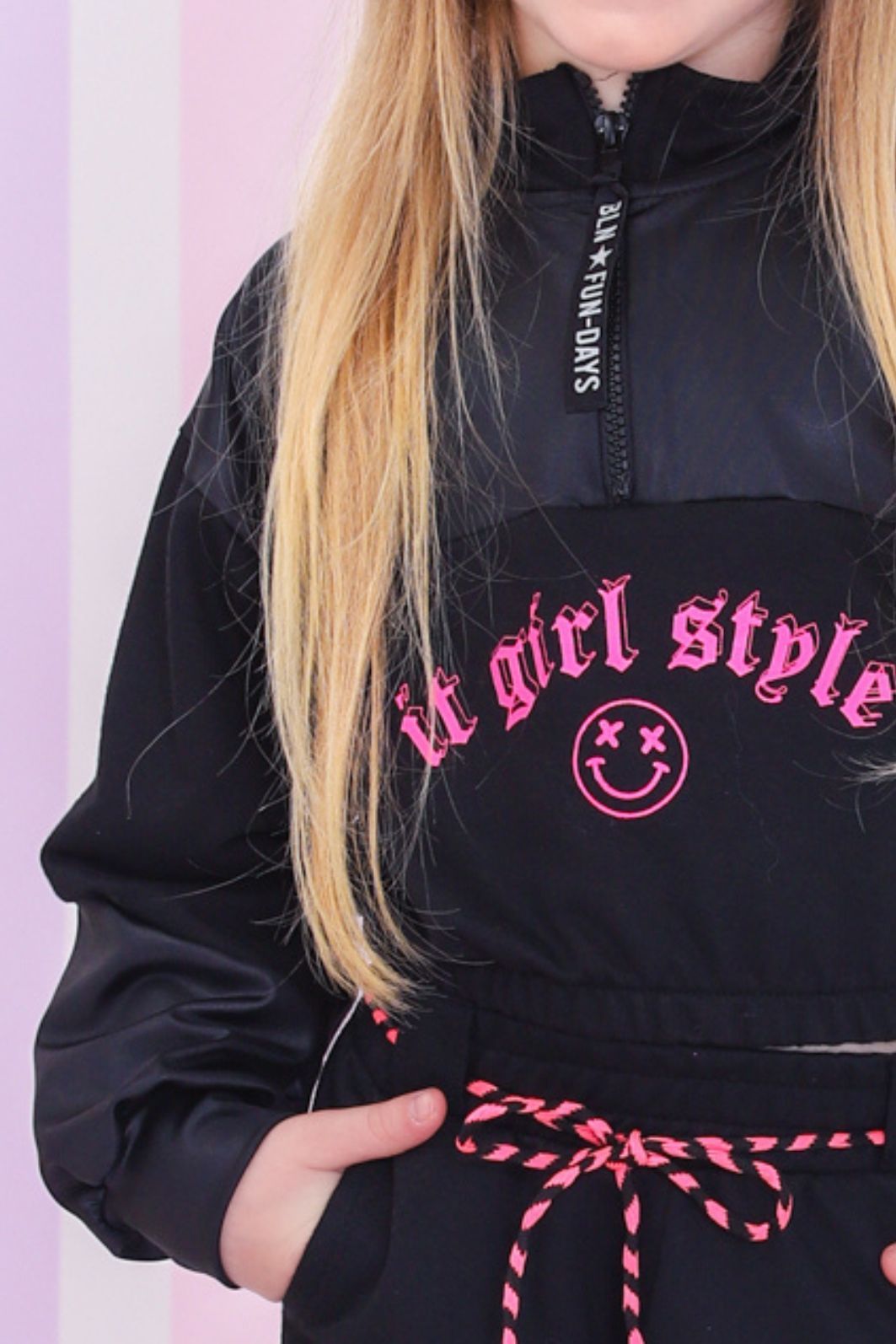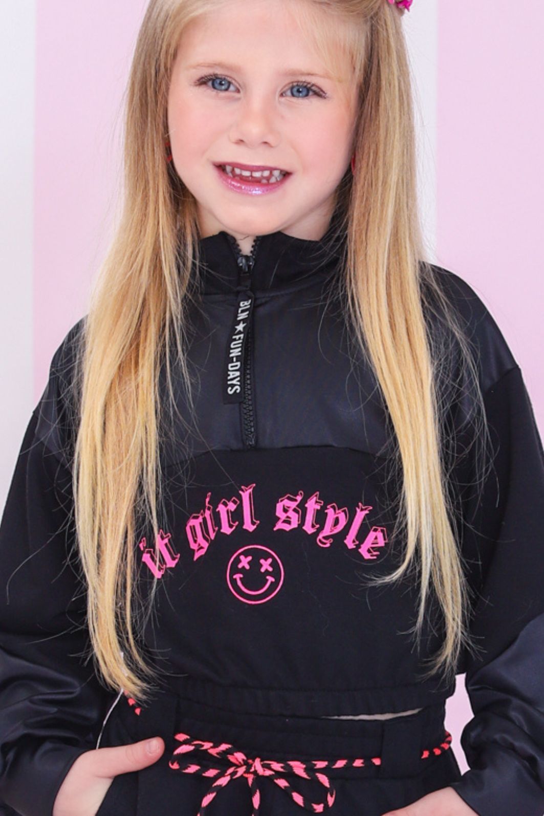 | Descrição | Moletom infantil em modelagem cropped, confeccionado em tecido macio e confortável. Possui gola alta com zíper, mangas longas e elástico na barra para melhor ajuste. Detalhe de estampa frontal. |