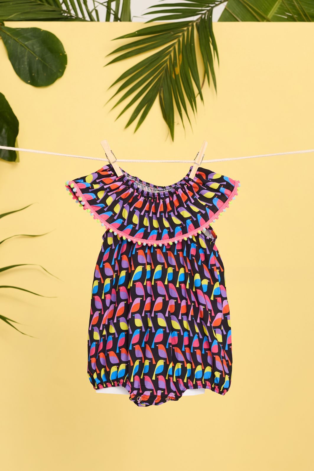 | Descrição | Romper infantil feminino confeccionado em tecido leve, com estampa colorida em padrão geométrico. Possui decote arredondado com franzido e acabamento em pompom, elástico na barra para melhor ajuste. Modelagem confortável que garante liberdade de movimentos, ideal para os dias quentes. |