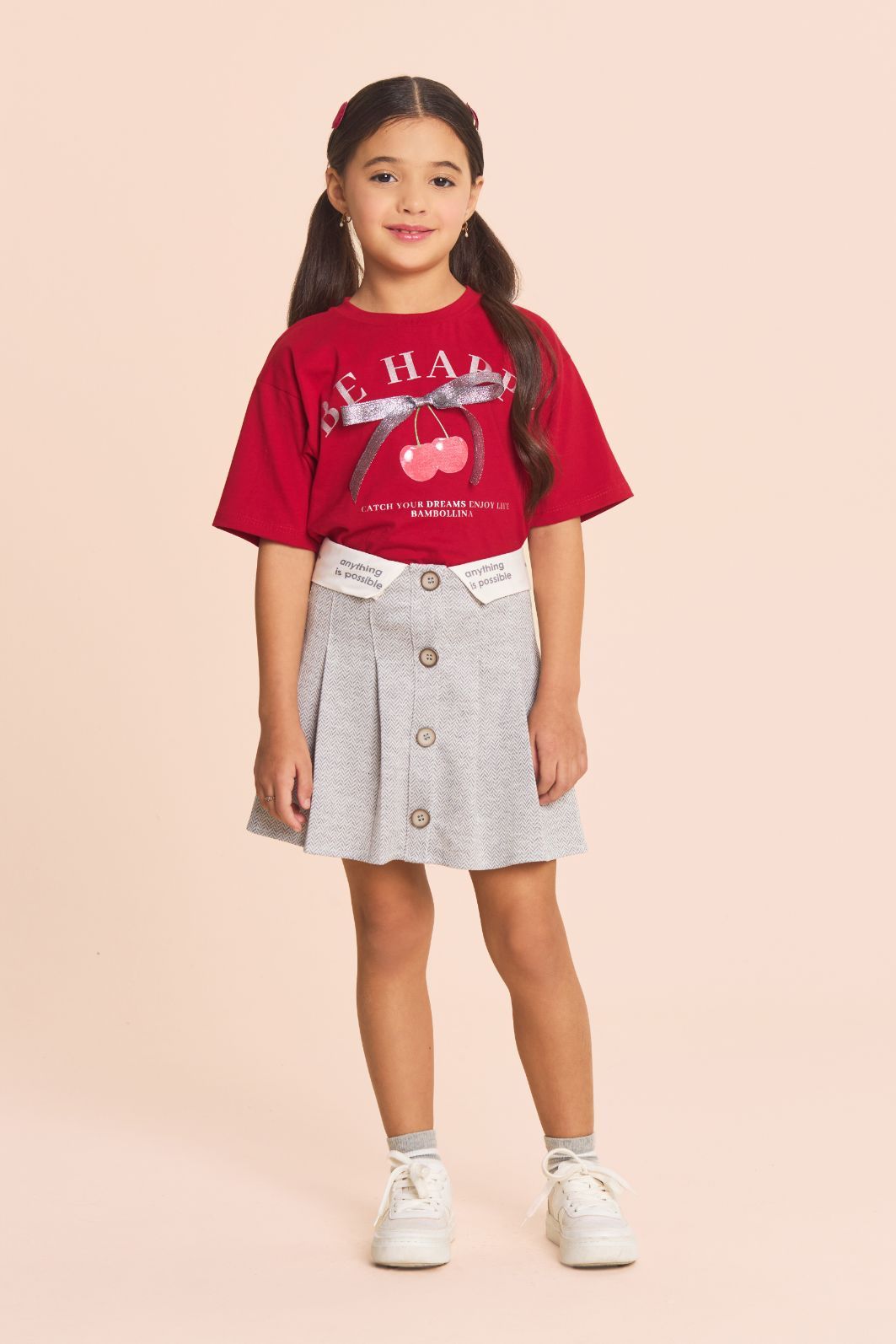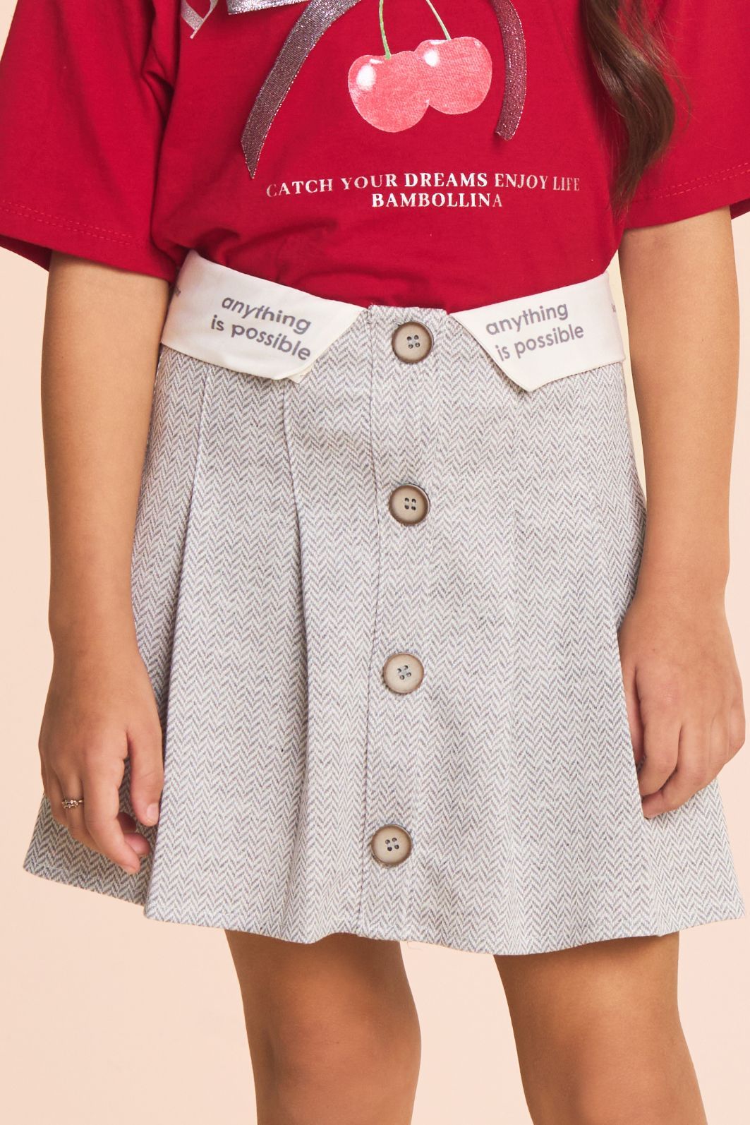 | Descrição | Saia feminina em modelagem evasê com pregas frontais e fechamento por botões centrais. Possui cós sublimado e acabamento reforçado. Peça de estilo moderno e casual, ideal para composições fashion. |