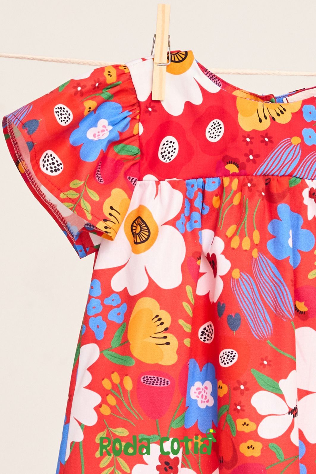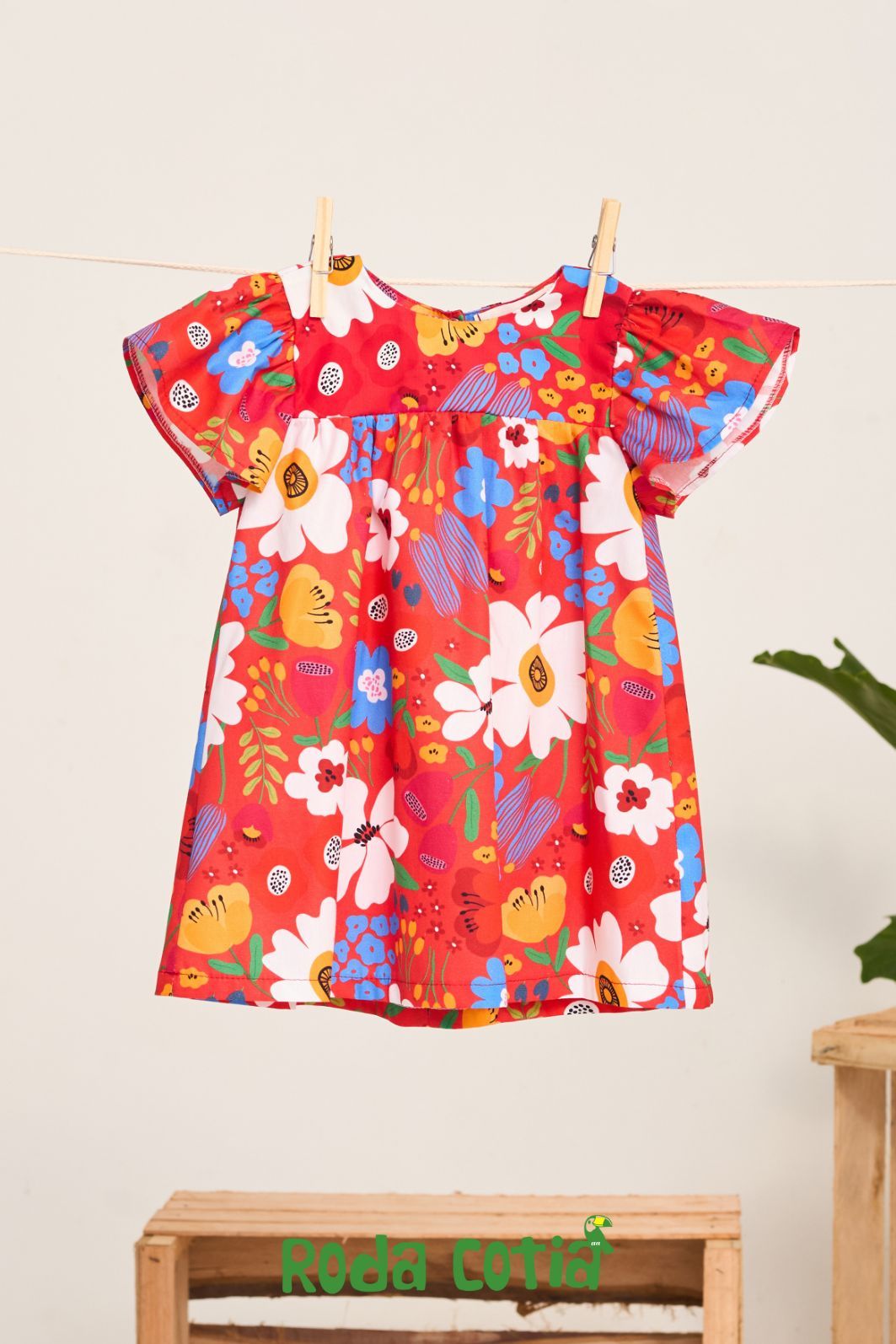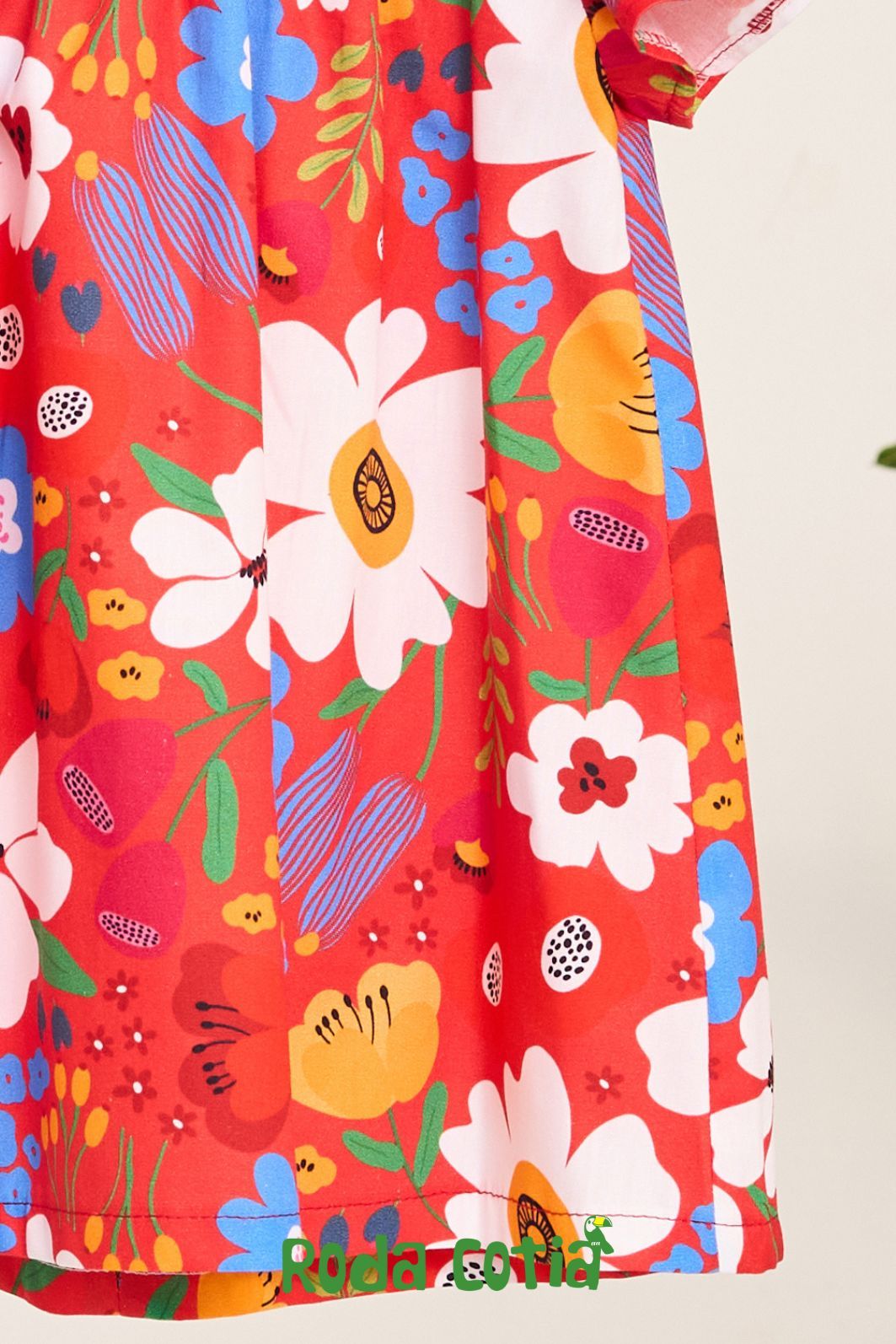 | Descrição | Vestido infantil com estampa floral vibrante em fundo vermelho, destacando flores coloridas. Possui mangas curtas bufantes e corte solto, proporcionando conforto e liberdade de movimento. Ideal para o verão, é uma peça casual e alegre, perfeita para ocasiões informais. |