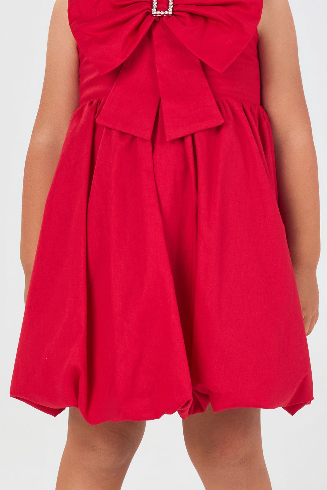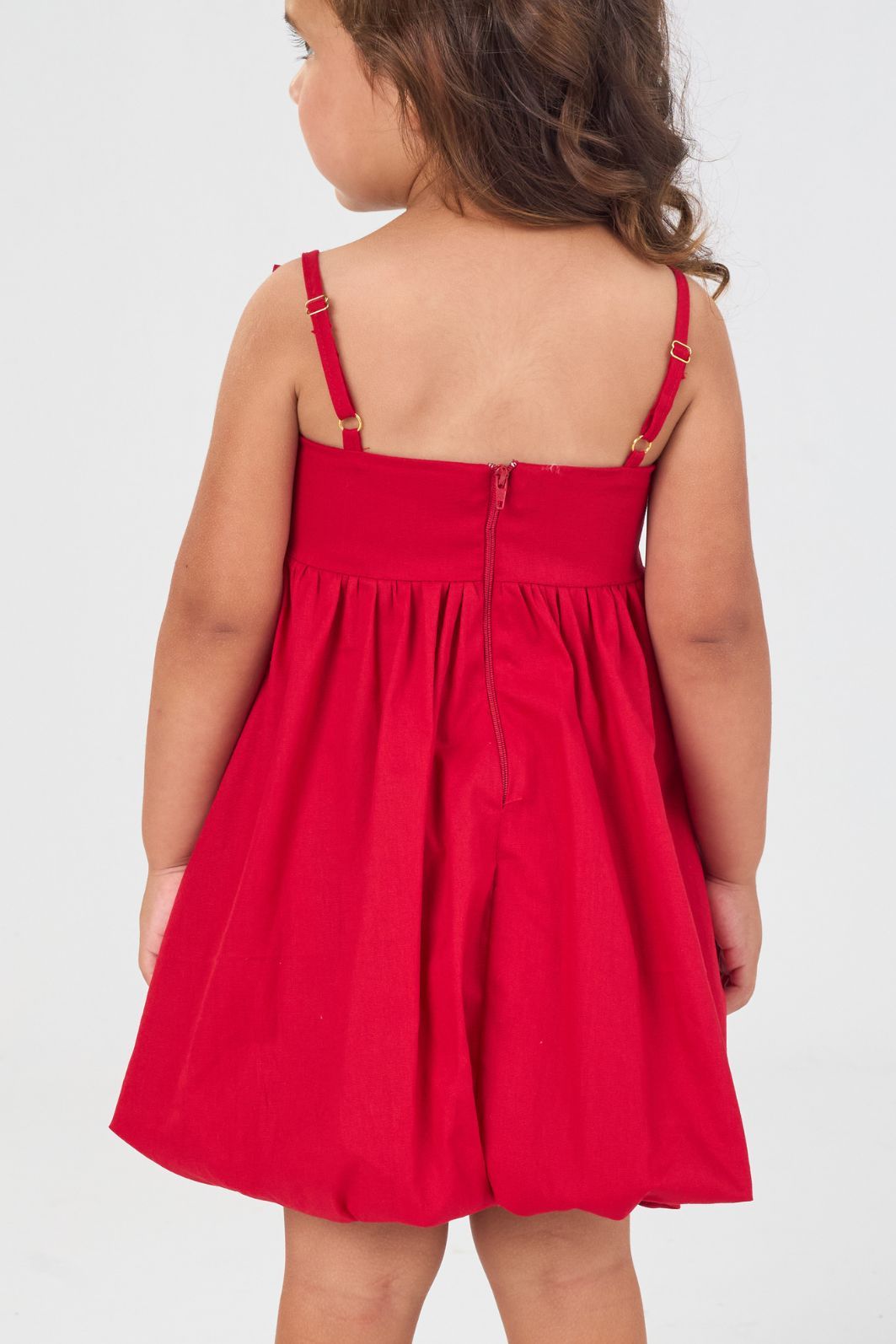 | Descrição | Vestido infantil vermelho, estilo balonê, sem mangas, com saia rodada e detalhe de laço frontal com fivela decorativa. Confeccionado em tecido estruturado, ideal para ocasiões especiais e festas, proporcionando um visual elegante e delicado. |