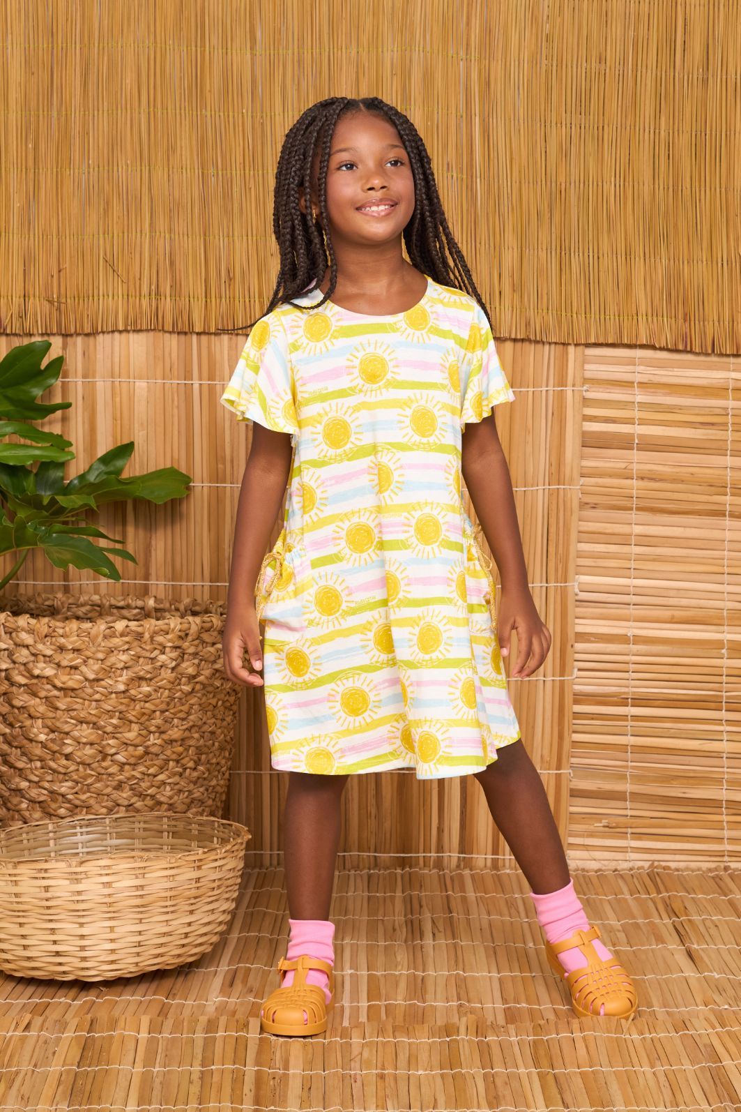 | Descrição | Vestido infantil confeccionado em tecido leve e macio, ideal para os dias quentes. Possui modelagem soltinha com caimento confortável, mangas curtas e decote arredondado, garantindo liberdade de movimentos. Apresenta estampa alegre em tons de amarelo, com acabamento delicado e toque suave, unindo praticidade, frescor e estilo para a moda infantil. |