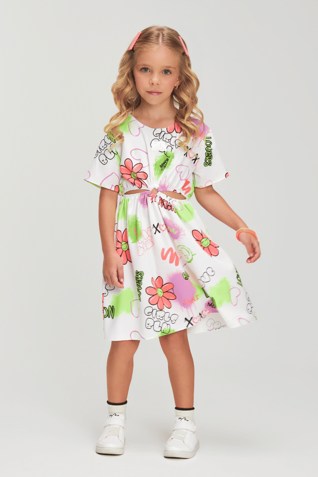 | Descrição | O vestido possui viés na parte interna do decote, mangas tradicionais e etiqueta personalizada da marca aplicada no peito. A cintura é marcada por uma abertura com elástico e argola no centro. Para facilitar ao vestir, o modelo conta com uma abertura nas costas, fechada por elástico e botão. |