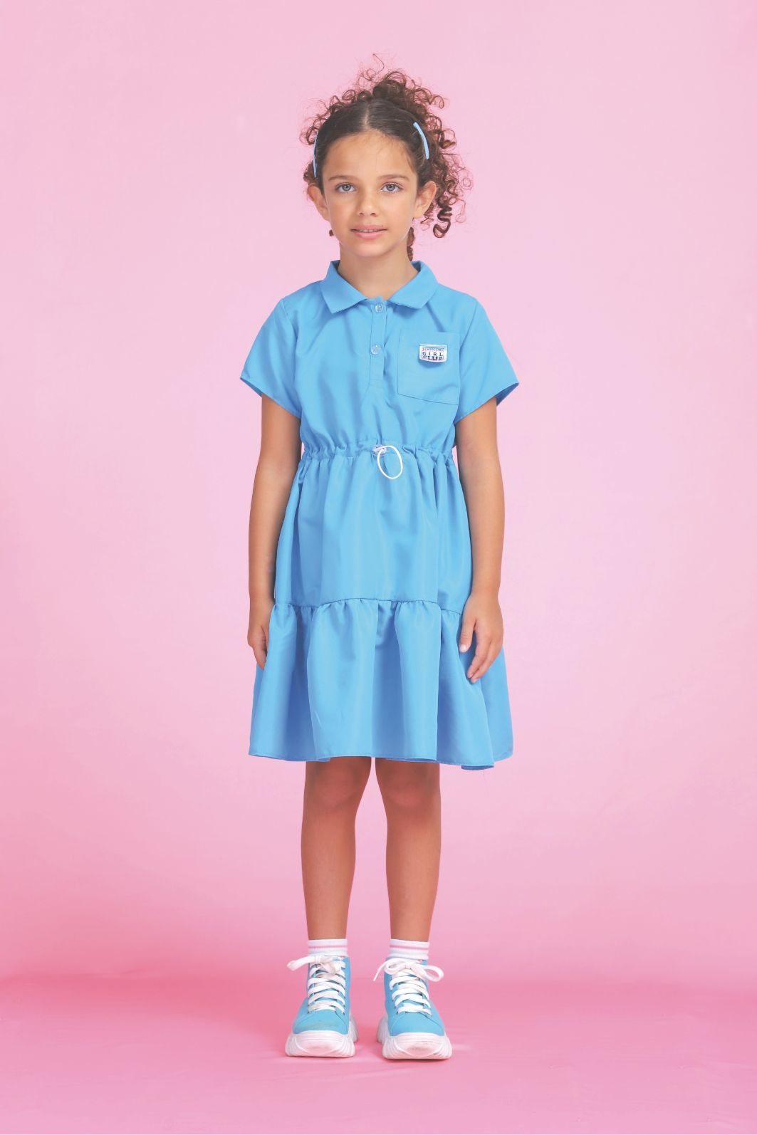 | Descrição | Vestido infantil feminino confeccionado em tecido leve e confortável. Modelo com gola camisa, mangas curtas e elástico na cintura com detalhe de amarração. Possui recorte com babado na saia e etiqueta da marca. Ideal para compor looks casuais com toque delicado e moderno. |