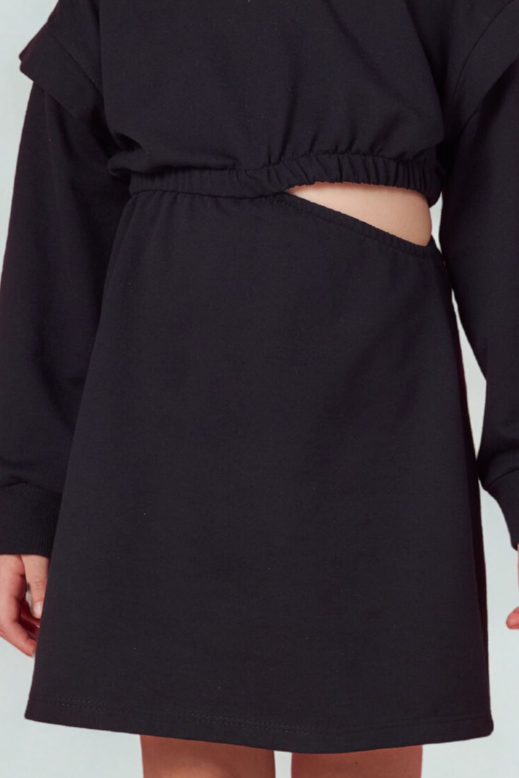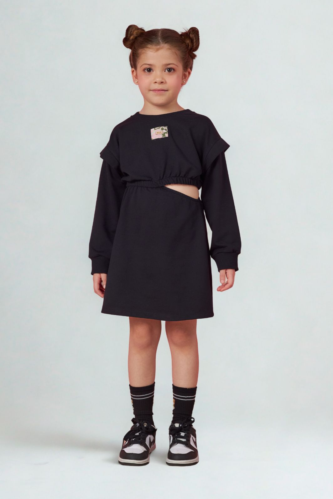 | Descrição | Vestido infantil em tecido confortável, com modelagem reta e manga longa. Apresenta recorte lateral com elástico na cintura, criando leve efeito franzido. Possui aplicação de uma etiqueta de tecido da marca na parte frontal, agregando estilo moderno e descolado à peça. |