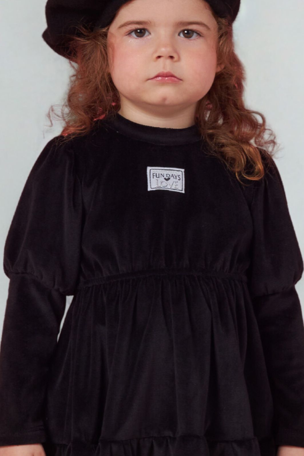 | Descrição | Vestido infantil confeccionado em plush, com toque macio e confortável. Possui modelagem ampla com recorte na cintura e babado na saia, mangas longas e gola redonda. Detalhe de etiqueta frontal aplicada no peito. Ideal para dias mais frios, proporcionando estilo e aconchego. |