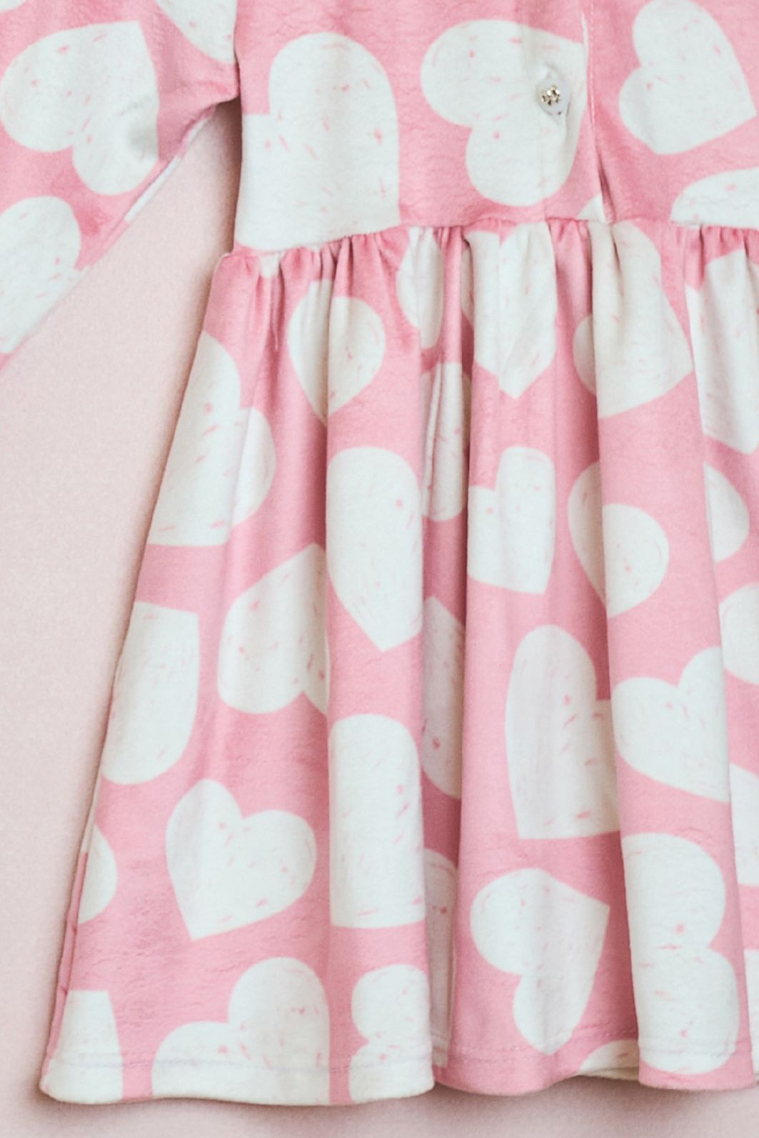 Descrição | Vestido infantil feminino em tecido super soft, com estampa de corações, modelagem manga longa, gola Peter Pan branca e fechamento frontal por botões. Toque macio, ideal para dias frios, proporcionando conforto e aquecimento. Indicado para uso casual e diário. |