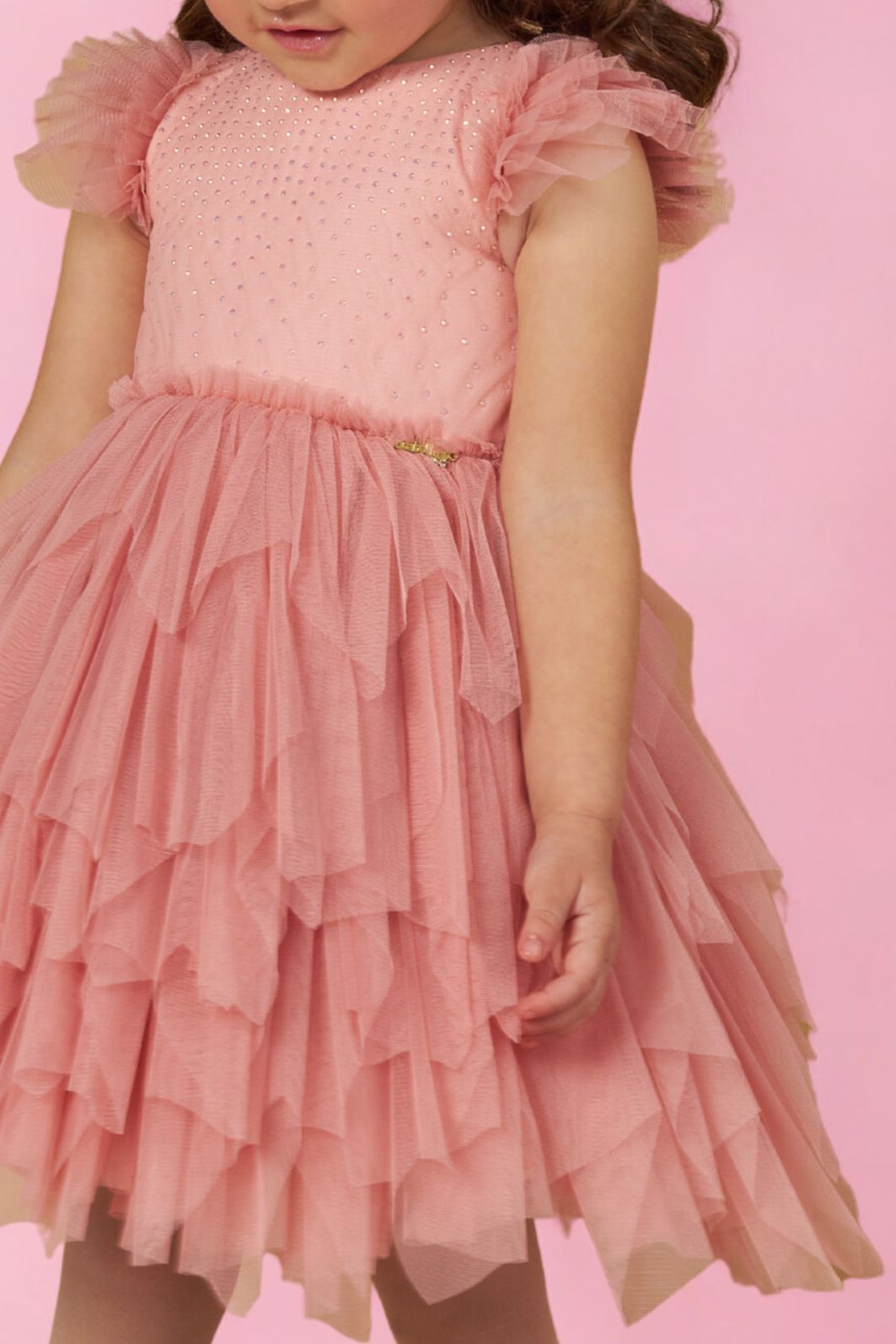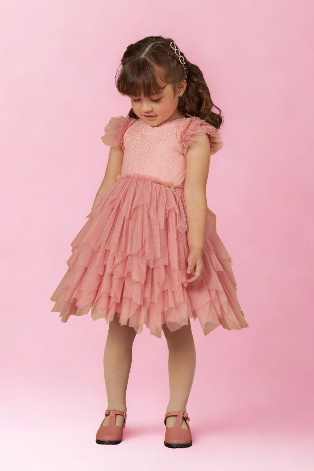 Descrição | O vestido apresenta um tom deslumbrante de Rose, que é sofisticado, atemporal e muito procurado para eventos. O corpete é feito em tecido com uma leve chuva de strass, garantindo um toque de glamour sem exageros. O grande destaque é a saia super rodada e volumosa composta por diversas camadas de tule, que criam um efeito lindo e cheio de movimento. Possui manguinhas curtas estilo "borboleta" ou franzidas em tule, adicionando um toque final de leveza e ternura. Com modelagem que prioriza o bem-estar da criança, o vestido permite que ela brinque e se divirta com total liberdade. |