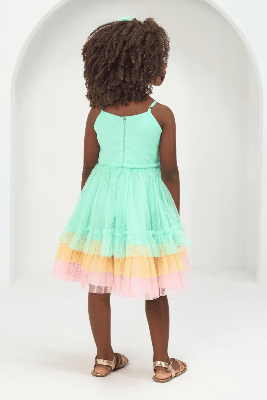 | Descrição | Delicado e encantador, este vestido infantil traz um toque de leveza e alegria ao look. Confeccionado com sobreposição em tule, possui modelagem soltinha, alças finas e detalhe de babados no busto, garantindo conforto e charme. A saia em camadas com mix de cores suaves cria um efeito moderno e divertido, perfeito para ocasiões especiais ou produções cheias de estilo. Acompanha laço combinando para completar o visual com elegância. |