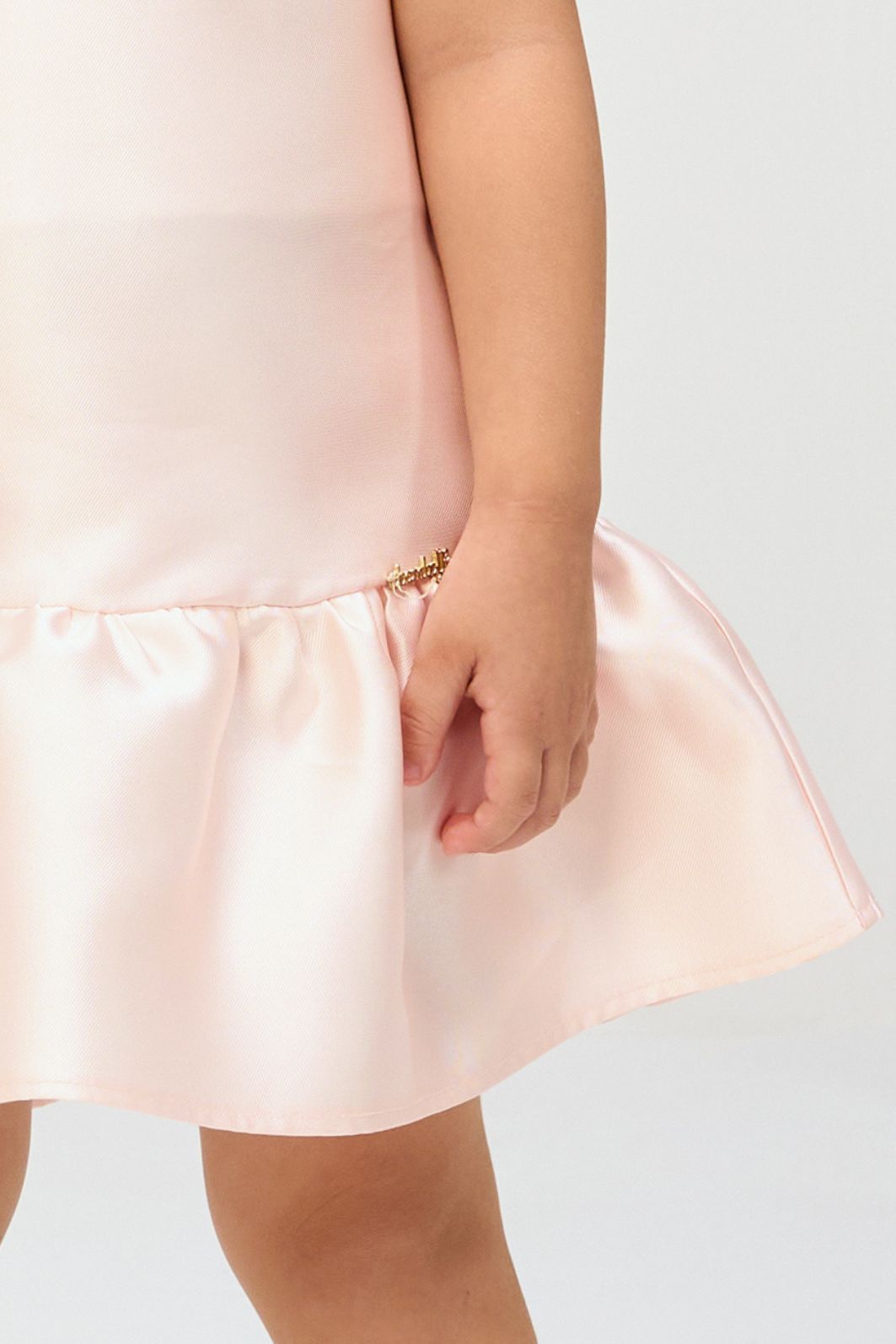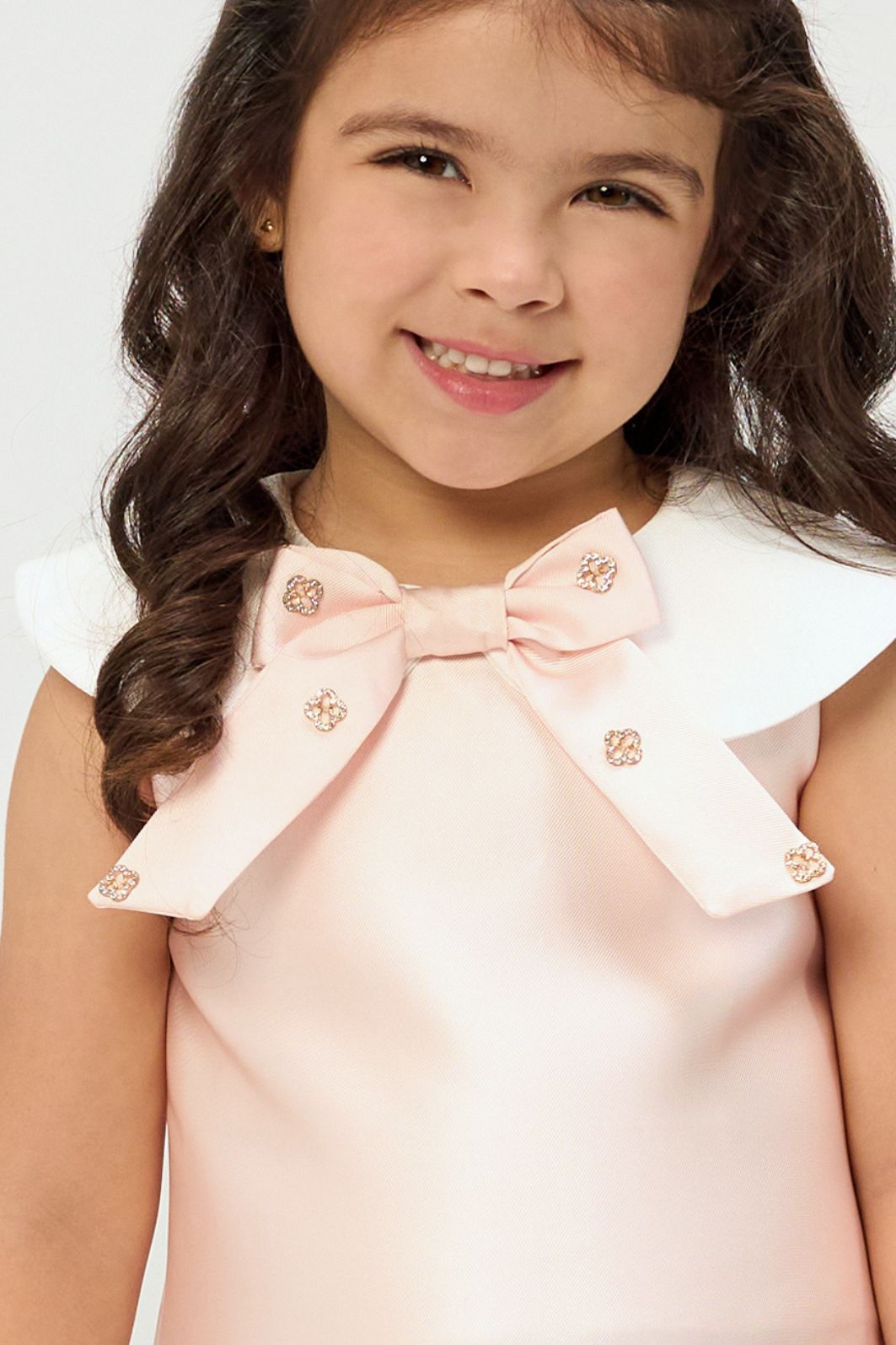 | Descrição | Vestido infantil confeccionado em zibeline, com modelagem reta e saia curta com babado na barra. Modelo sem mangas, com gola arredondada contrastante em tricoline e laço decorativo aplicado na parte frontal. Possui fechamento por zíper nas costas e acabamento refinado, proporcionando estrutura, conforto e visual delicado para ocasiões especiais ou uso casual elegante. |