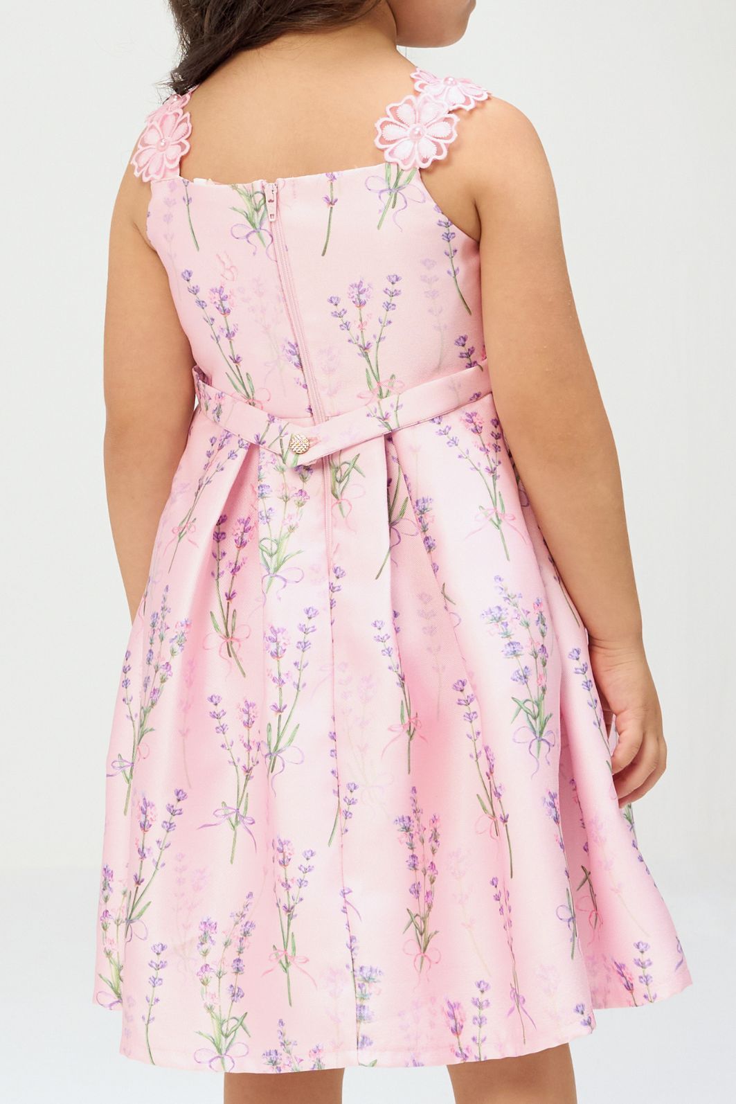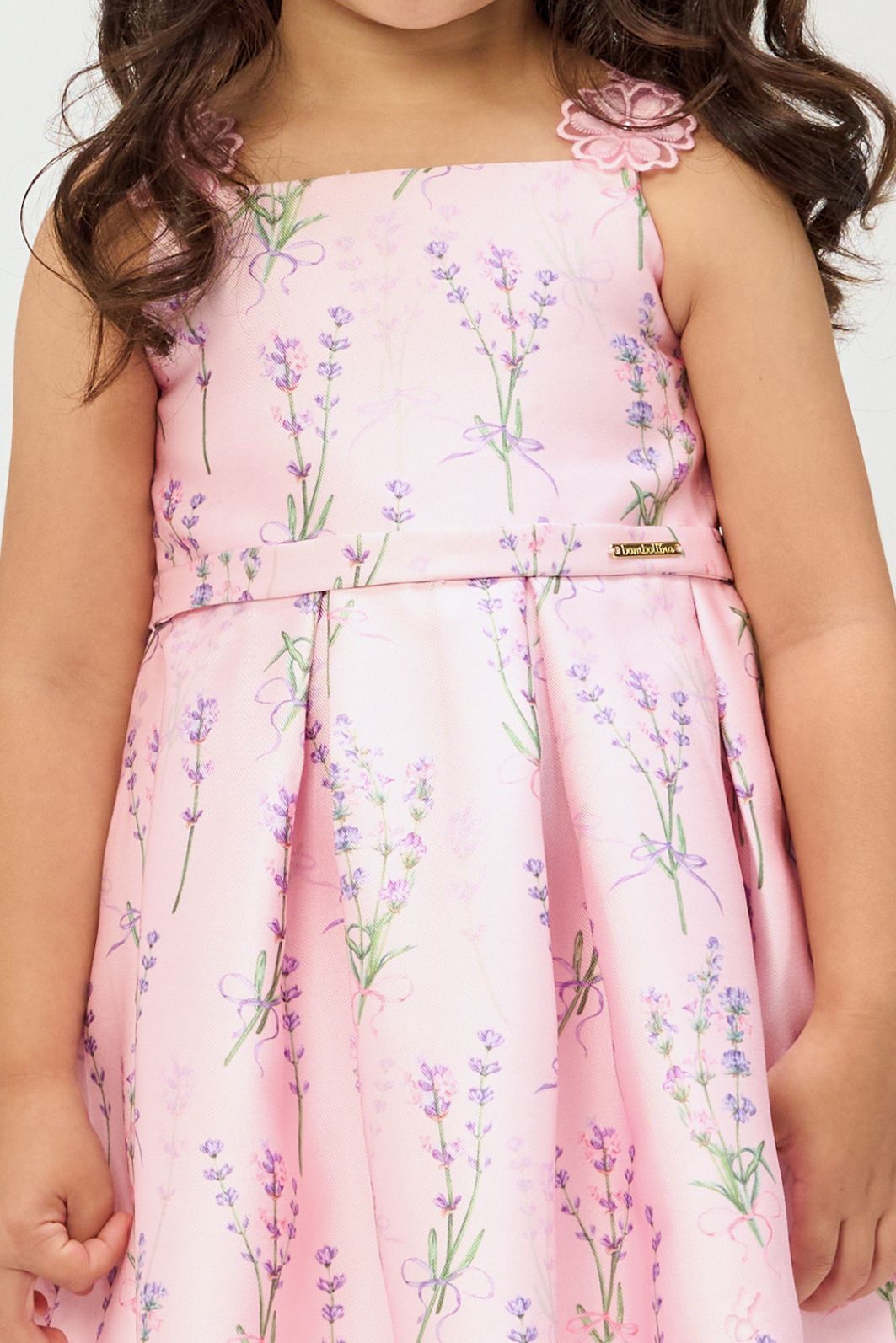 Descrição | Vestido infantil rodado em um delicado tom de rosa claro, com uma estampa floral sutil que remete a flores de lavanda em tons de lilás e verde. O modelo possui decote quadrado e alças decoradas, sendo perfeito para ocasiões especiais ou para compor um look charmoso de Primavera/Verão. A cintura é marcada com um detalhe discreto, e a saia possui um leve volume que confere um toque de elegância e movimento. |