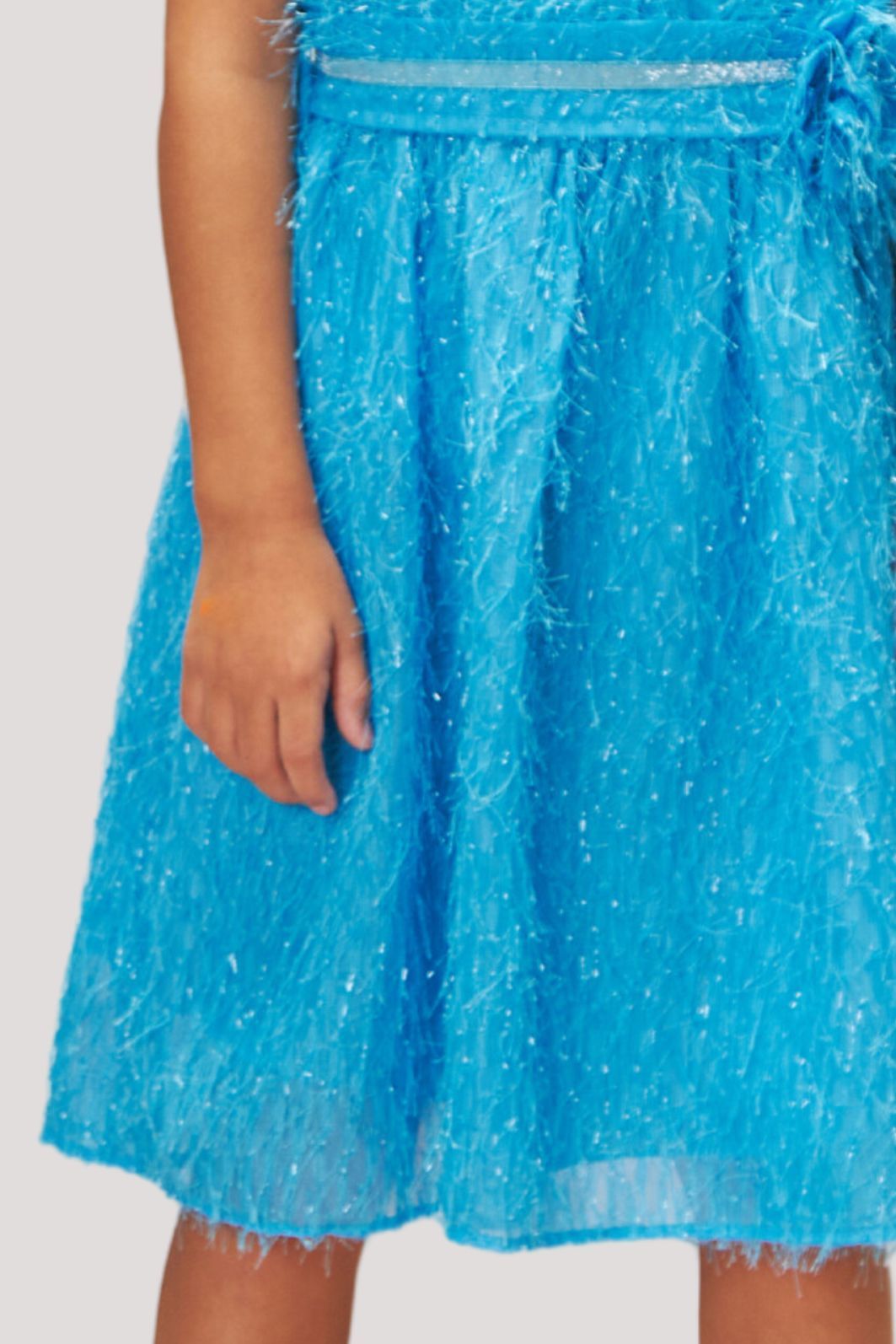 | Descrição | Vestido infantil em tecido texturizado com fios de brilho, modelagem evasê e comprimento midi. Possui decote redondo, alças largas e faixa na cintura com detalhe de uma flor na lateral. Confeccionado em material leve e confortável, ideal para festas e ocasiões especiais, com visual moderno e sofisticado. |