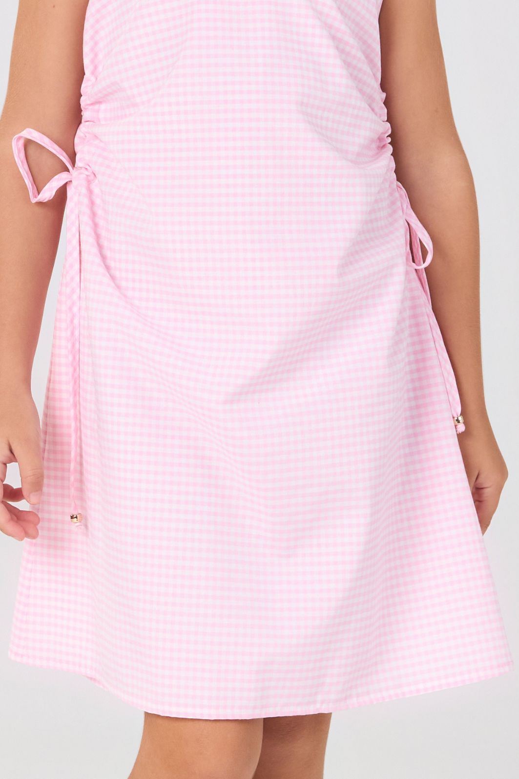 | Descrição | Vestido infantil feminino confeccionado em tecido leve e estruturado, modelo sem mangas, com recorte evasê e ótimo caimento. Possui detalhe de amarração lateral decorativa, proporcionando ajuste confortável e visual delicado, ideal para uso diário e ocasiões casuais. |